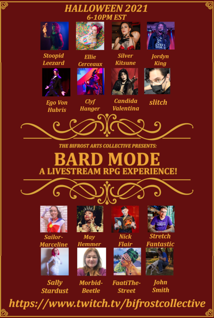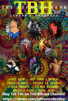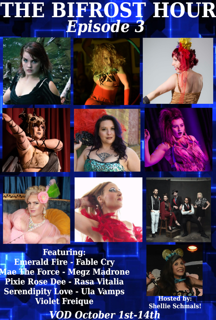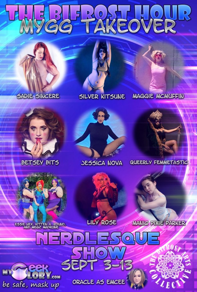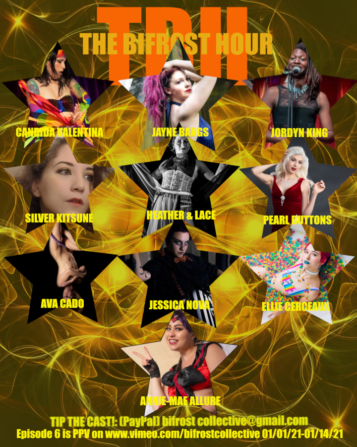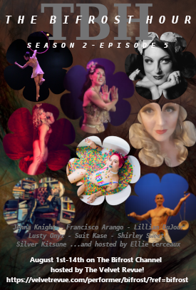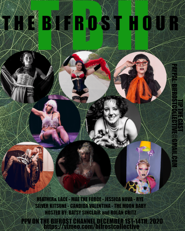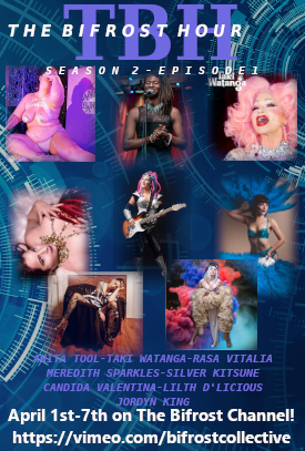 The Bifrost Hour:An hour long variety show like you’ve never seen before! The Bifrost Hour embraces all types of fringe arts: from burlesque to blockhead, mermaids to music, flow arts to fire, aerial to acrobats, this monthly pay-per-view show has it all!